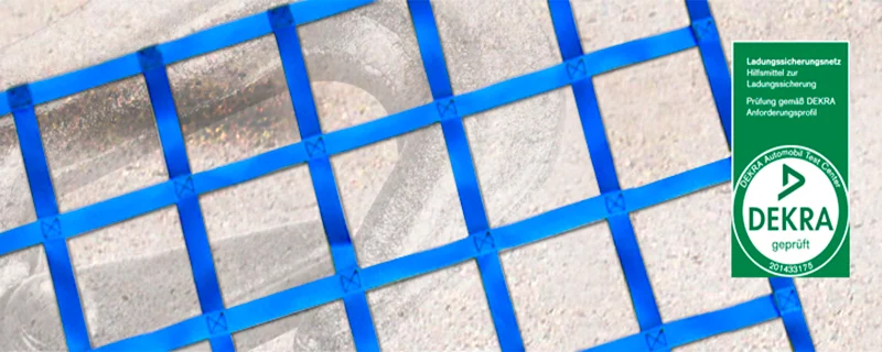 Unsere Gurtbandnetze sind von höchster Qualität "Made in Germany, geprüft und zertifiziert nach der VDI Richtlinie 2700 Blatt 3.3 und dem DEKRA Anforderungsprofil VA 80-13-TTD-50.